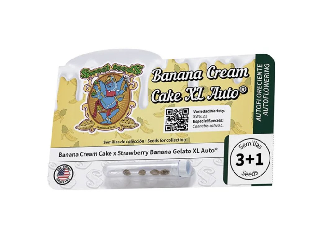 Banana Cream Cake XL Auto® – Sweet Seeds® je extra velká samonakvétací odrůda 7. generace, vytvořená jako pocta dezertním genetikám s bohatou produkcí pryskyřice. Vznikla křížením aromatické Banana Cream Cake a vysoce výnosné Strawberry Banana Gelato XL Auto® (SWS99). Výsledkem je moderní autoflower genetika s robustní stavbou, gurmánským aromatem a silným, přesto vyváženým účinkem. Rostliny mají pevnou, dobře větvenou strukturu a tvoří velké, velmi husté květy bohatě pokryté jasně třpytivými trichomy, ideálními pro špičkové extrakce.