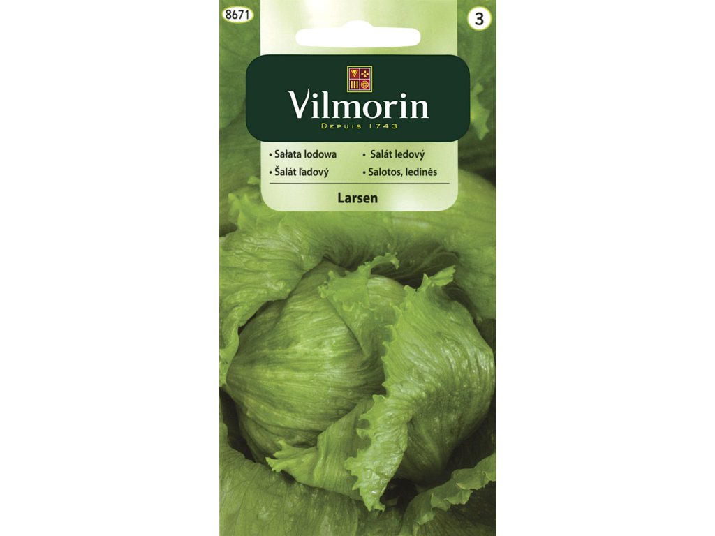 Salát ledový Larsen Vilmorin je poloraná odrůda pro celoroční pěstování v půdě. Vytváří velké, uzavřené, křehké a chutné hlávky. Je odolná vůči vybíhání do květu a proti několika druhům plísni.