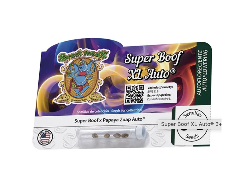 Super Boof XL Auto® – Sweet Seeds® je extra velká samonakvétací odrůda 10. generace, která spojuje extrémní produkci pryskyřice genetiky Super Boof s exotickým, tropickým charakterem Papaya Zoap Auto® (SWS107). Výsledkem je moderní a vyvážený hybrid s výrazným aromatem, vysokým obsahem THC a hustými, masivními květy ideálními pro všechny typy extrakcí. Rostliny jsou kompaktní, vitální a velmi dobře větvené, s konzistentním růstem a stabilní strukturou.